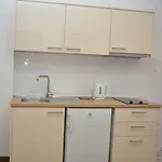 Mezi další zařízení patří rychlovarná konvice, chladnička a kuchyňské nádobí, které slouží k samoobsluze.